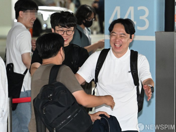 [영종도=뉴스핌] 김학선 기자 = 미국 이민당국에 의해 조지아주에 구금됐던 근로자들이 12일 오후 인천국제공항 제2여객터미널을 통해 귀국한 뒤 가족들과 만나고 있다. 2025.09.12 yooksa@newspim.com
