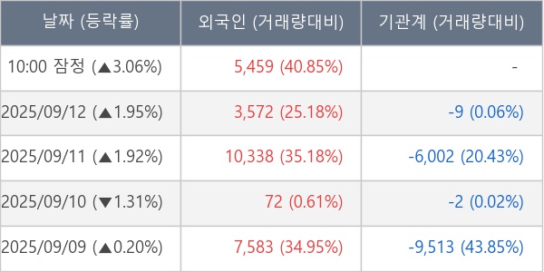 [표] 외국인ㆍ기관 순매매량 (단위 주)