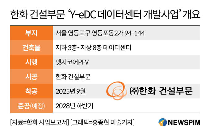 [서울=뉴스핌] 조수민 기자 = 한화 건설부문이 서울 영등포구 영등포동에 조성하는 'Y-eDC 데이터센터'가 본격 착공에 돌입했다. 인공지능(AI) 확산으로 데이터센터 수요가 늘어나는 가운데, 서울 도심에 첫 엣지 데이터센터를 선보이며 관련 포트폴리오 확장에 속도를 내고 있다. 업계에서는 이번 사업이 한화 건설부문의 수익성 제고 뿐 아니라 향후 데이터센터 수주 경쟁력 강화에 기여할 것으로 보고 있다.