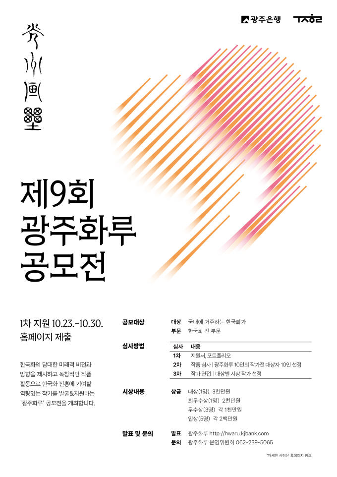 [광주=뉴스핌] 김시아 기자 = 광주은행이 국내 최대 규모의 한국화 공모전인 '제9회 광주화루 공모전'을 개최한다.