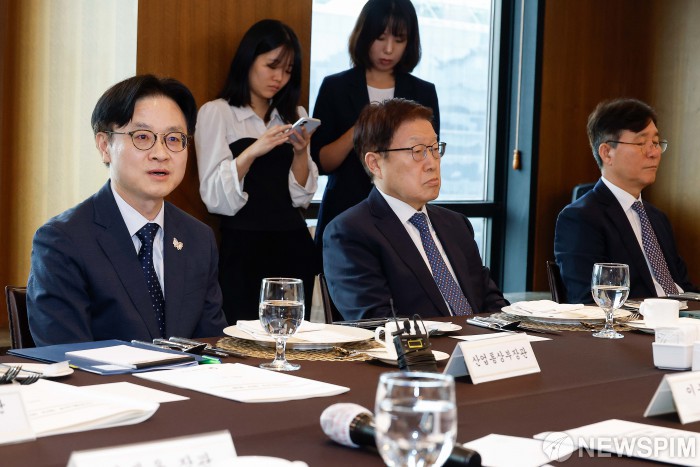[서울=뉴스핌] 류기찬 기자 = 김정관 산업통상부 장관이 1일 오후 서울 중구 한국프레스센터에서 열린 '산업통상부 역대장관 초청 간담회'에서 모두 발언을 하고 있다. 2025.10.01 ryuchan0925@newspim.com