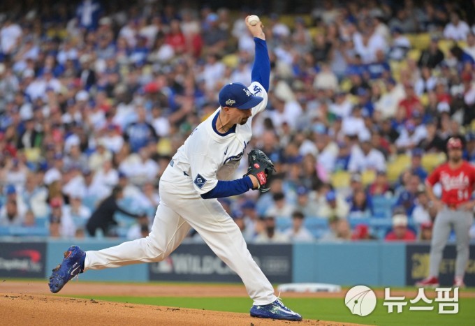 [로스앤젤리스 로이터=뉴스핌] 박상욱 기자= 스넬이 1일(한국시간) 열린 메이저리그 내셔널리그 와일드카드 시리즈 신시내티전 1회초 투구하고 있다. 2025.10.1 psoq1337@newspim.com