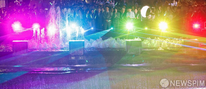 [서울=뉴스핌] 류기찬 기자 = 이명박 전 대통령, 오세훈 서울시장 등 참석자들이 1일 오후 서울 중구 청계광장에서 열린 ‘청계천 복원 20주년 행사’에서 레이저 아트를 관람하고 있다. 2025.10.01 ryuchan0925@newspim.com