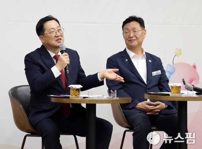 [대전=뉴스핌] 김수진 기자 = 웃음 속 예산 줄다리기, 하지만 결론은 '협력'이었다. 1일 열린 '이장우 대전시장과의 만남'에서 이장우 대전시장과 김제선 중구청장은 원도심 재생부터 지식산업센터 건립, 문화공원 조성까지 다양한 구민 현안을 놓고 의견을 주고 받았지만 결국 대전시와 중구 발전을 위해 손을 맞잡는 모습을 보여줬다.