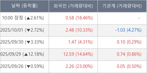 [표] 외국인ㆍ기관 순매매량 (단위 만주)