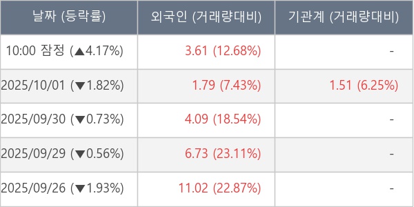 [표] 외국인ㆍ기관 순매매량 (단위 만주)