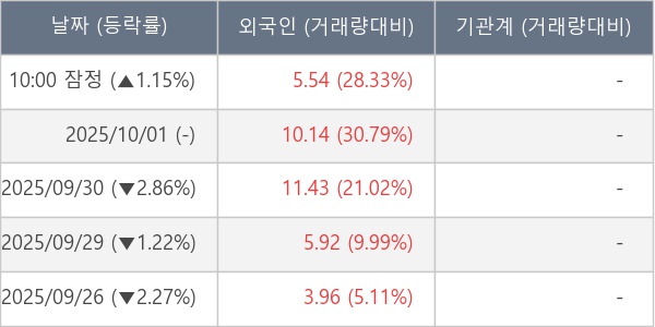 [장중수급포착] 파라택시스코리아, 외국인 6일 연속 순매수행진... 주가 +1.15%