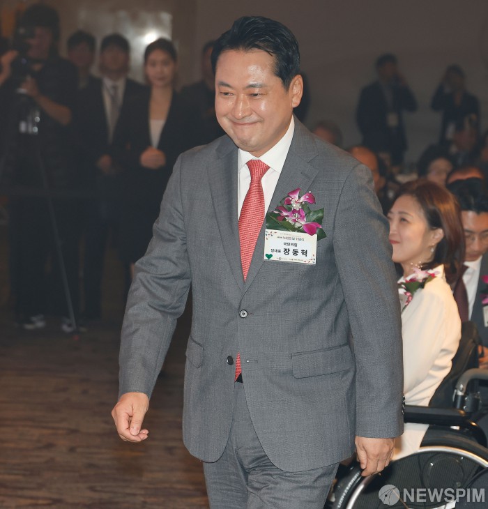 [서울=뉴스핌] 류기찬 기자 = 장동혁 국민의힘 당대표가 2일 서울 중구 소공로 롯데호텔 크리스탈볼룸에서 열린 ‘제29회 노인의 날 기념식’에서 축사를 하기 위해 이동하고 있다. 2025.10.02 ryuchan0925@newspim.com