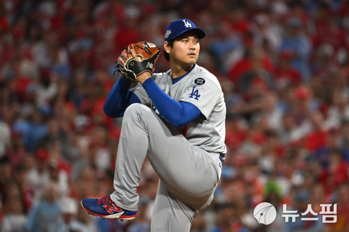 [필라델피아 로이터=뉴스핌] 장환수 스포츠전문기자= LA 다저스 오타니 쇼헤이가 5일 필라델피아와 NLDS 원정 1차전에 선발 등판해 힘차게 공을 던지고 있다. 2025.10.05 zangpabo@newspim.com |