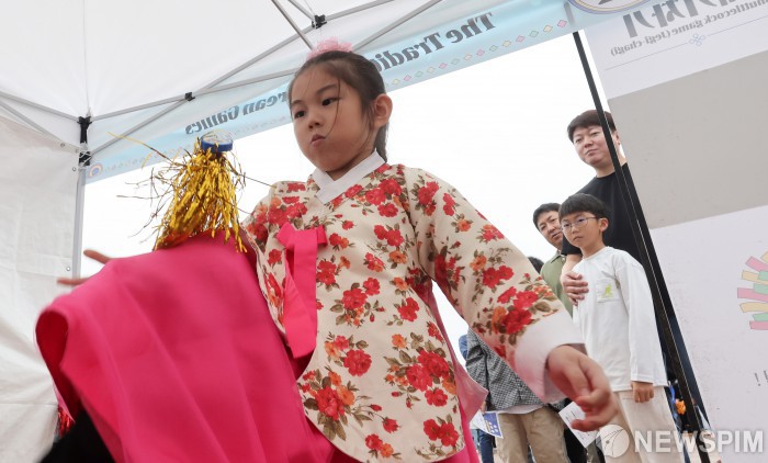 [서울=뉴스핌] 최지환 기자 = 추석 연휴인 7일 서울 중구 남산골 한옥마을에서 열린 '추석놀이터'에서 시민들이 전통놀이를 즐기고 있다. 2025.10.07 choipix16@newspim.com