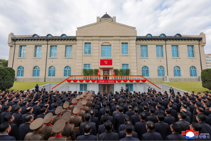 [서울=뉴스핌] 이영종 통일전문기자 = 북한 노동당 총비서 겸 국무위원장인 김정은이 노동당 창건 80주년을 이틀 앞둔 8일 평양 당창건사적관을 방문해 연설하고 있다. [사진=조선중앙통신] 2025.10.09 yjlee@newspim.com