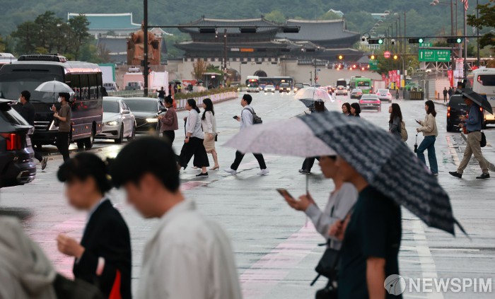 [서울=뉴스핌] 김학선 기자 = 추석 연휴가 끝난 10일 오전 서울 종로구 광화문광장 인근에서 시민들이 출근길을 서두르고 있다. 2025.10.10 yooksa@newspim.com