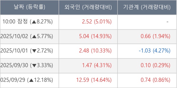 [표] 외국인ㆍ기관 순매매량 (단위 만주)