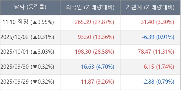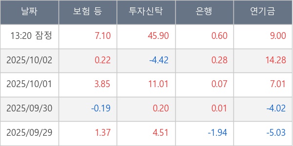 [표] 주요 기관별 순매매량 (단위 만주)