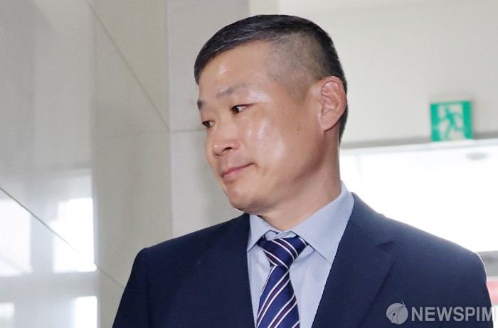 [서울=뉴스핌] 정일구 기자 = 김동혁 전 국방부 검찰단장이 10일 오후 서울 서초구 서초한샘빌딩에 마련된 순직해병 특검 사무실로 소환 조사를 받기 위해 피의자 신분으로 출석하고 있다. 2025.10.10 mironj19@newspim.com