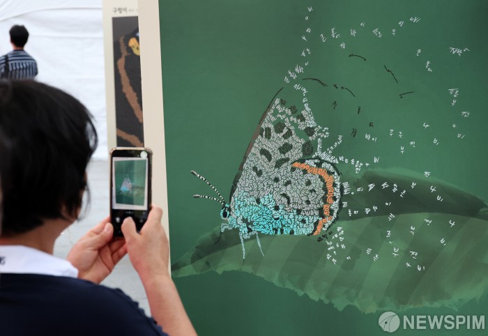 [서울=뉴스핌] 최지환 기자 = 11일 오후 서울 종로구 광화문광장에서 열린 한글문화산업전에서 시민들이 부스를 둘러보고 있다. 2025.10.11 choipix16@newspim.com