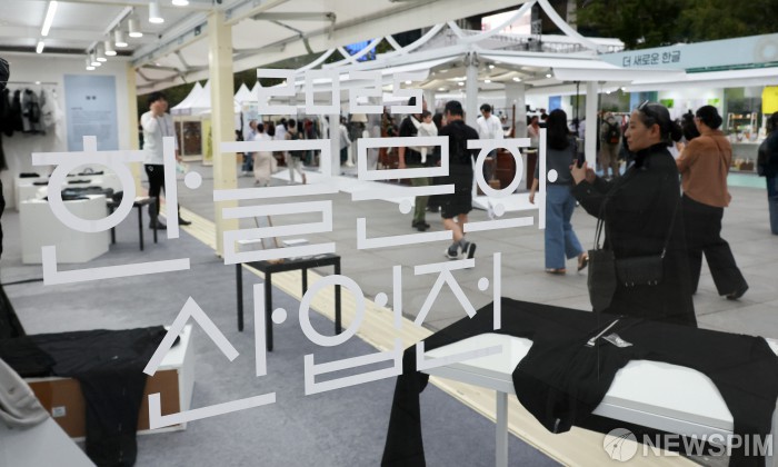 [서울=뉴스핌] 최지환 기자 = 11일 오후 서울 종로구 광화문광장에서 열린 한글문화산업전에서 시민들이 부스를 둘러보고 있다. 2025.10.11 choipix16@newspim.com