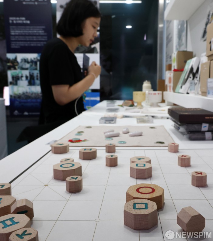 [서울=뉴스핌] 최지환 기자 = 11일 오후 서울 종로구 광화문광장에서 열린 한글문화산업전에서 시민들이 부스를 둘러보고 있다. 2025.10.11 choipix16@newspim.com