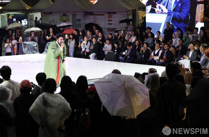[서울=뉴스핌] 최지환 기자 = 11일 오후 서울 종로구 광화문광장에서 열린 한글한마당 기념행사에서 소리꾼 유태평양이 공연을 펼치고 있다. 2025.10.11 choipix16@newspim.com