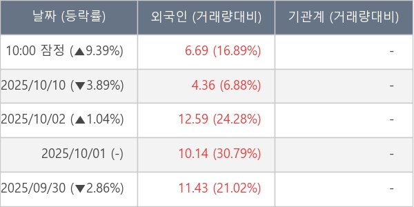 [장중수급포착] 파라택시스코리아, 외국인 8일 연속 순매수행진... 주가 +9.39%