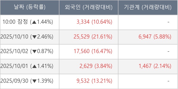 [표] 외국인ㆍ기관 순매매량 (단위 주)