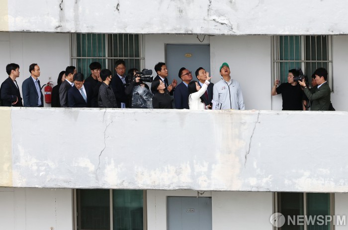 [서울=뉴스핌] 김학선 기자 = 오세훈 서울시장이 13일 오전 재건축 정비계획 변경안이 통과된 서울 강남구 대치동 은마아파트를 찾아 현장을 둘러보고 있다. 2025.10.13 yooksa@newspim.com