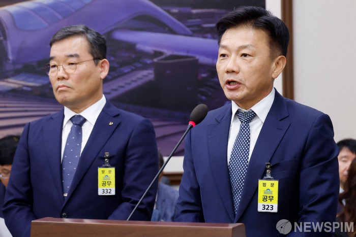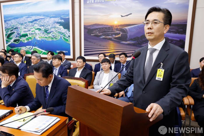 [서울=뉴스핌] 류기찬 기자 = 송치영 포스코이엔씨 사장이 13일 오후 서울 여의도 국회에서 열린 '2025년 국토교통부 등에 대한 국정감사'에서 질의에 답하고 있다. 2025.10.13 ryuchan0925@newspim.com |