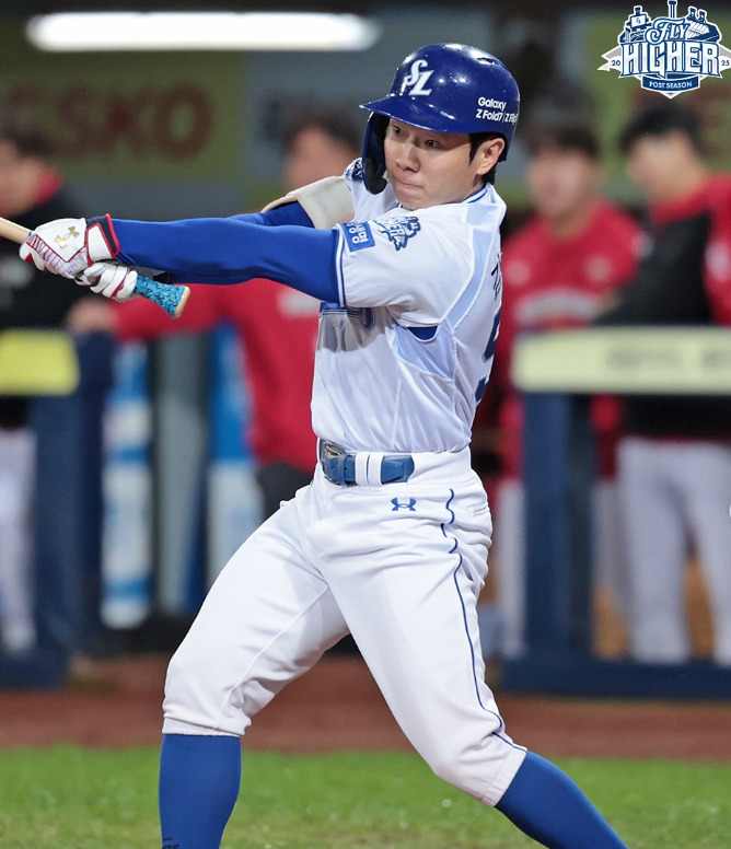 [서울=뉴스핌] 삼성의 구자욱이 13일 SSG와의 경기에서 3회 중견수 키를 넘기는 1타점 적시 2루타를 쳤다. [사진 = 삼성] 2025.10.13 wcn05002@newspim.com |