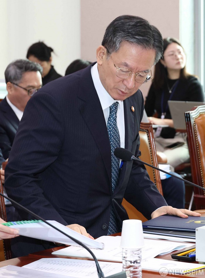 [서울=뉴스핌] 윤창빈 기자 = 정성호 법무부 장관이 14일 오전 서울 여의도 국회에서 열린 법제사법위원회의 법무부 등에 대한 국정감사에 출석하고 있다. 2025.10.14 pangbin@newspim.com