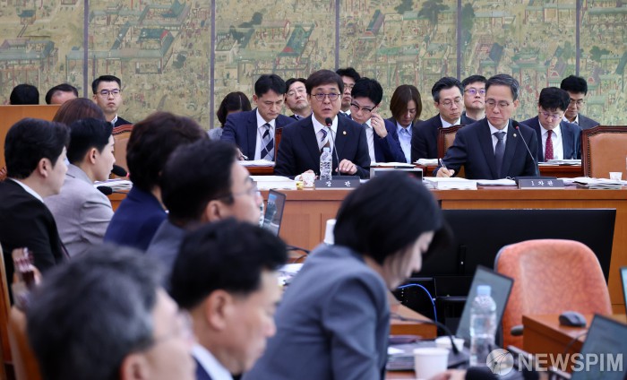 [서울=뉴스핌] 최지환 기자 = 최휘영 문화체육관광부 장관이 14일 서울 여의도 국회에서 열린 문화체육관광위원회 국정감사에서 의원 질의에 답변하고 있다. 2025.10.14 choipix16@newspim.com