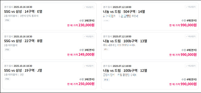 티켓베이 내 야구 경기 티켓 거래 화면. [자료=조승래 의원실] 2025.10.15 plum@newspim.com
