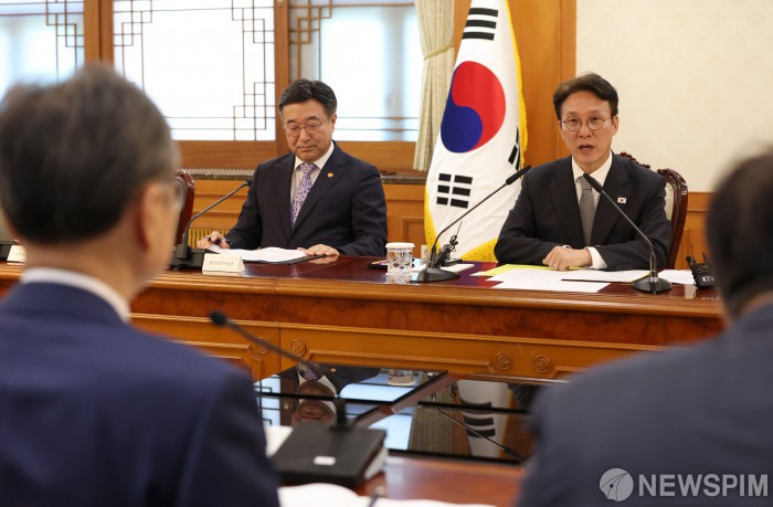 [서울=뉴스핌] 이길동 기자 =김민석 국무총리가 15일 오전 서울청사에서 "치안 안전 관계 장관회의"에서 모두 발언을 하고 있다. 2025.10.15 gdlee@newspim.com