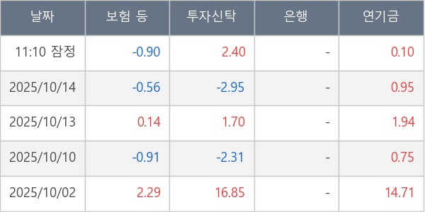 ※ 사모펀드 등 일부 기관의 순매매량은 표시되지 않음