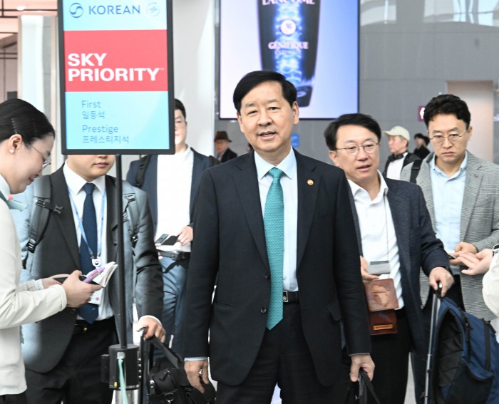 [서울=뉴스핌] 구윤철 부총리 겸 기획재정부 장관이 15일 오전 인천공항에서 미국 워싱턴D.C.에서 개최되는 '주요20개국(G20) 재무장관회의와 국제통화기금 및 세계은행(IMF/WB) 연차총회'에 참석하기 위해 출국하고 있다. [사진=기획재정부] 2025.10.15 photo@newspim.com