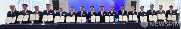 [서울=뉴스핌] 양윤모 기자 = 윤호중 행정안전부장관과 참석자들이 15일 오후 KT 광화문빌딩에서 개최된 범정부 합동 '전기통신금융사기 통합대응단' 개소식에 참석해 MOU를 체결후 기념촬영을 하고 있다. 2025.10.15 yym58@newspim.com