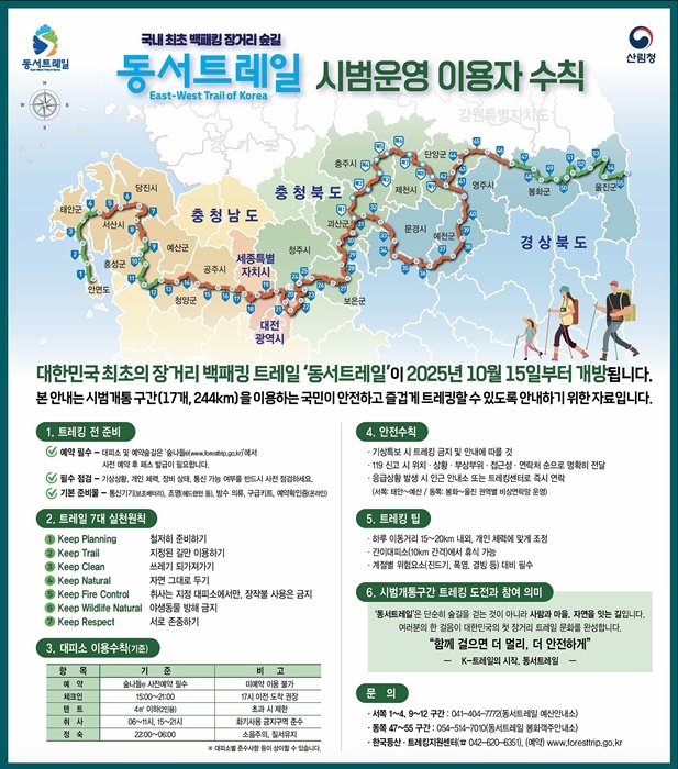 특히 동서트레일은 해외 사례를 단순히 모방하는 것이 아니라 우리나라의 역사·문화·생활을 접목한 'K-장거리 트레일'로 농산어촌 마을에 활력을 불어넣고 지역 주민들의 실질적인 소득 창출에도 기여할 전망이다.