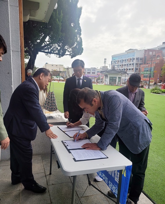 또 남우모 다문화 위원장, 최규학 농어민 위원장이 공동으로 낭독한 '폐철도법 제정 촉구 시민 선언문'을 통해 "폐역과 철로는 과거의 흔적이 아닌 미래의 기반이며, 법 제정을 통해 경주가 전국의 모범 도시가 돼야 한다"고 천명했다. 이어 한영태 위원장의 첫 서명을 시작으로 시민들의 자발적인 서명이 이어졌다.