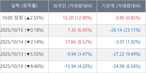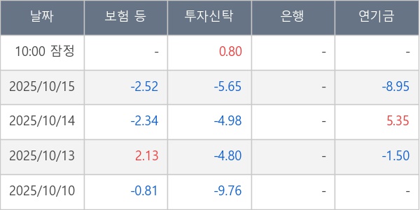 [표] 주요 기관별 순매매량 (단위 만주)