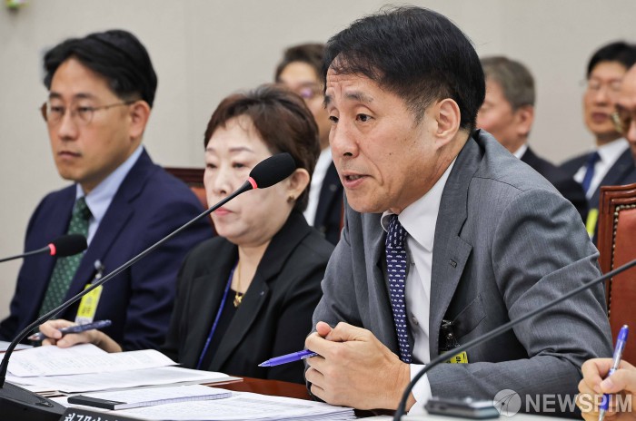 [서울=뉴스핌] 윤창빈 기자 = 장영진 한국무역보험공사 사장이 16일 오전 서울 여의도 국회에서 열린 산업통상자원중소벤처기업위원회의 대한무역투자진흥공사등에 대한 국정감사에서 의원 질문에 답변하고 있다. 2025.10.16 pangbin@newspim.com