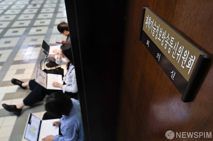 [서울=뉴스핌] 윤창빈 기자 = 16일 오후 서울 여의도 국회에서 열린 과학기술정보방송통신위원회 국정감사가 최민희 위원장이 취재진 퇴장을 선언해 비공개로 진행되고 있다. 2025.10.16 pangbin@newspim.com