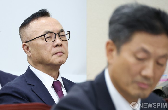 [서울=뉴스핌] 정일구 기자 = 황주호 전 한국수력원자력 사장이 16일 오후 서울 여의도 국회 과학기술정보방송통신위원회에서 열린 원자력안전위원회 등에 대한 국정감사에 출석해 전대욱 한국수력원자력 사장 직무대행에게 향하는 의원 질의를 경청하고 있다. 2025.10.16 mironj19@newspim.com