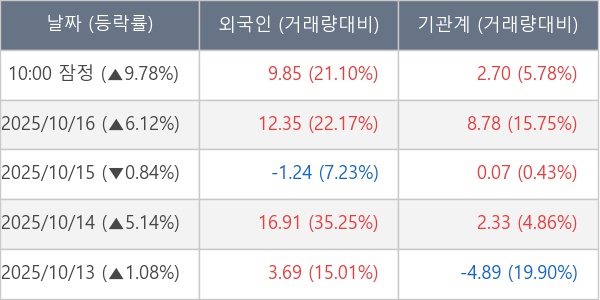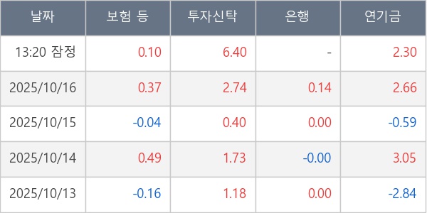 [표] 주요 기관별 순매매량 (단위 만주)