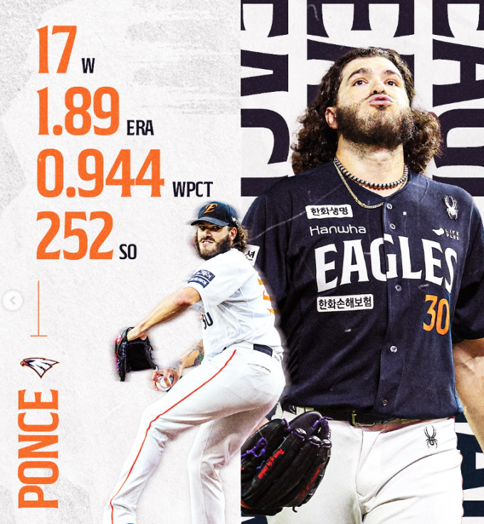 [서울=뉴스핌] 정규 시즌 투수 4관왕을 달성한 폰세. [사진 = 한화 SNS] 2025.10.17 wcn05002@newspim.com |