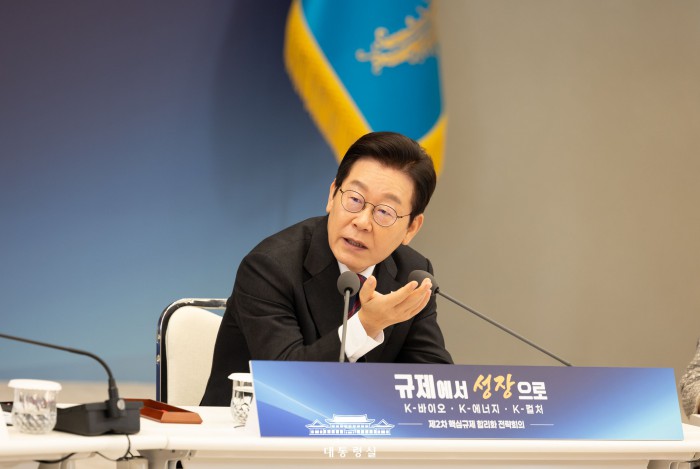 [서울=뉴스핌] 이재명 대통령이 16일 서울 용산구 대통령실에서 열린 제2차 핵심규제 합리화 전략회의에서 발언을 하고 있다. [사진=대통령실] 2025.10.16 photo@newspim.com |