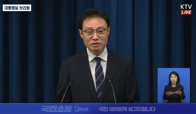 이규연 대통령실 홍보소통수석이 17일 용산 대통령실에서 브리핑을 하고 있다. [사진=KTV] |