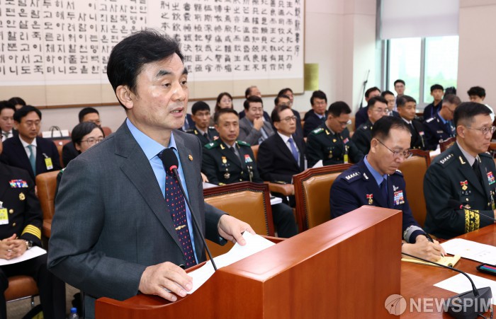 [서울=뉴스핌] 최지환 기자 = 안규백 국방부장관이 17일 오후 서울 여의도 국회 법제사법위원회에서 열린 군사법원 등에 대한 국정감사에서 기관보고를 하고 있다. 2025.10.17 choipix16@newspim.com
