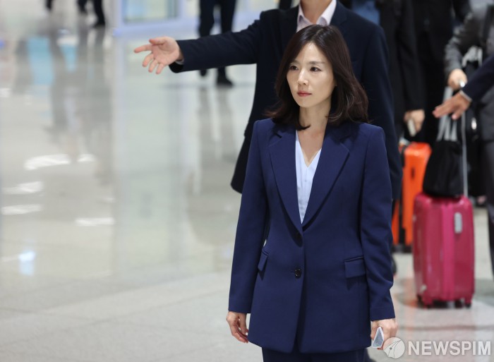 [서울=뉴스핌] 이형석 기자 = 캄보디아로 파견된 정부 합동대응팀 단장인 김진아 외교부 2차관이 18일 인천국제공항 제2터미널에 도착해 이동하고 있다. 2025.10.18 leehs@newspim.com