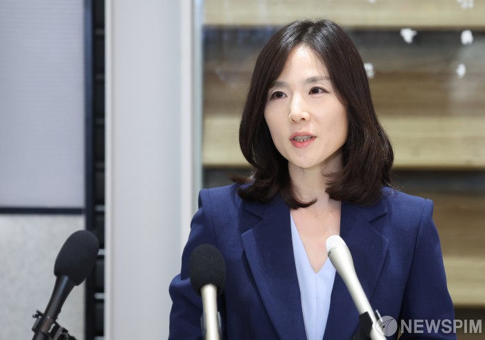 [서울=뉴스핌] 이형석 기자 = 캄보디아로 파견된 정부 합동대응팀 단장인 김진아 외교부 2차관이 18일 인천국제공항 제2터미널에서 기자회견을 진행하고 있다. 2025.10.18 leehs@newspim.com