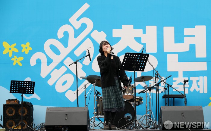 [서울=뉴스핌] 정일구 기자 = '히든스테이지 시즌3 TOP10' 무화가 18일 오후 서울 서초구 반포한강공원 세빛섬 야외무대에서 감엔터테인먼트 주최로 열린 '2025 한강 청년 버스킹 축제'에서 라이브 공연을 선보이고 있다. 2025.10.18 mironj19@newspim.com