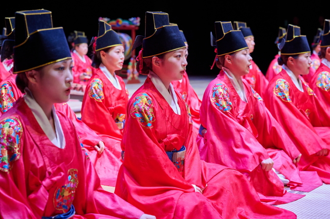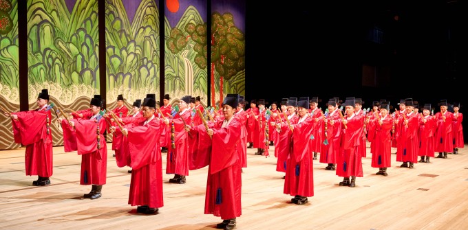 10월 17일 서울 세종문화회관 대극장에서 열린 제20회 창신제(創新祭)에서 크라운해태 임직원들이 '종묘제례악 전폐희문' 공연을 하고 있다. [사진=크라운해태제과] |